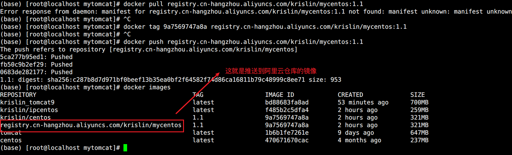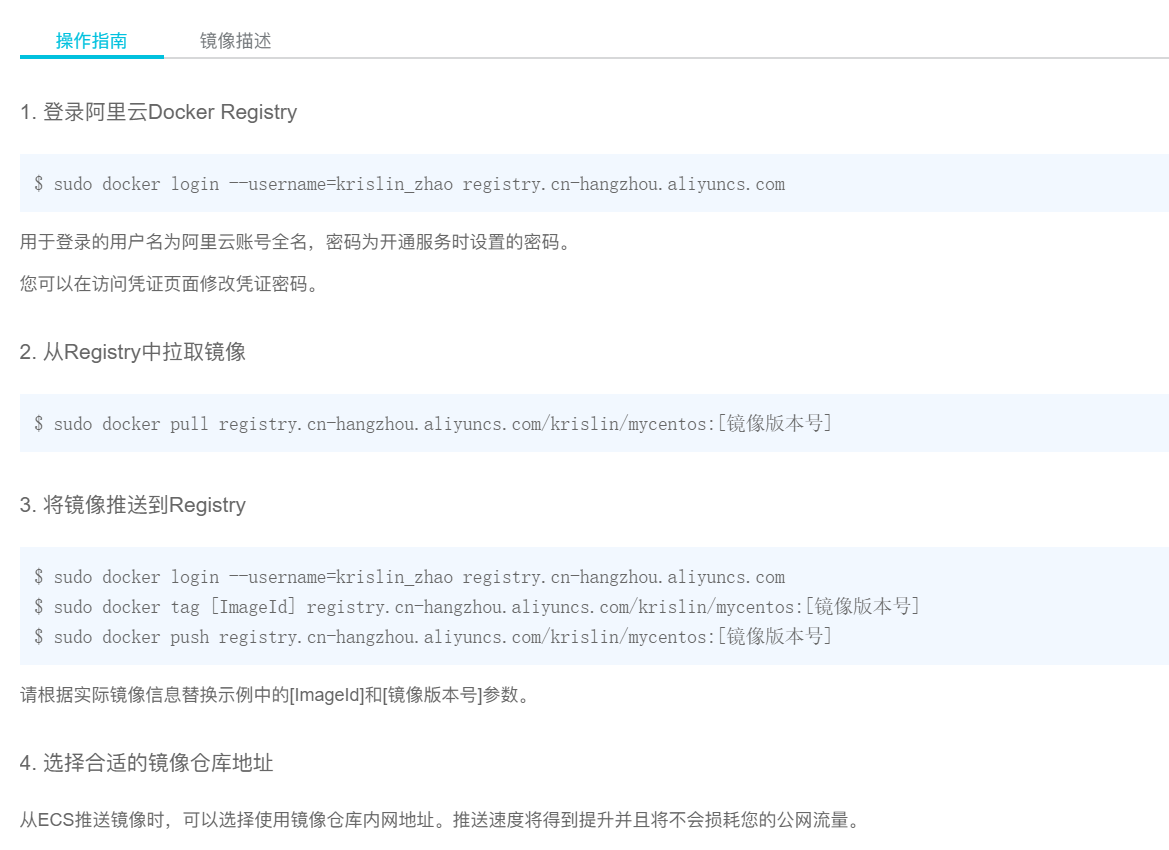 3. 然后根据指示推送本地 image 到阿里云的 repository