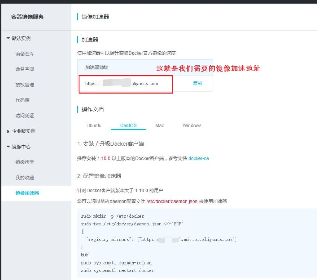 以阿里云为例,首先注册一个阿里云账号,然后进入镜像加速页面