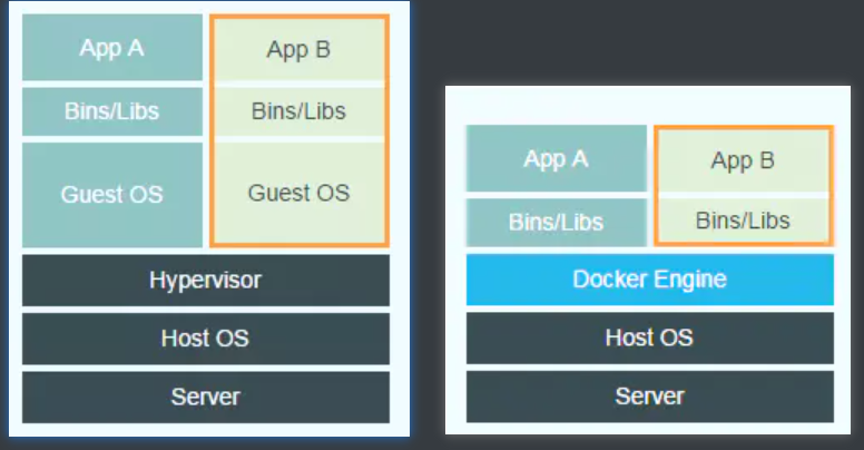 2. Docker利用的是宿主机的内核,而不需要CentOS。因此,当新建一个容器时,docker不需要和虚拟机一样重新加载一个操作系统内核。从而避免加载操作系统内核这个比较费时费资源的过程,当新建一个虚拟机时,虚拟机软件需要加载CentOS,整个新建过程是分钟级别的。而docker由于直接利用宿主机的操作系统,因此新建一个docker容器只需要几秒钟。