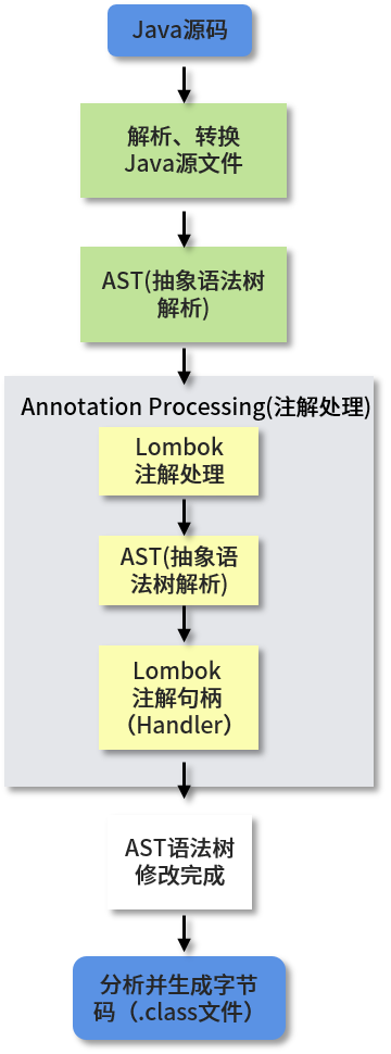 其实 Lombok 是基于 Java 1.6 实现的 JSR 269: Pluggable Annotation Processing API 来实现的,也就是通过编译期自定义注解处理器来实现的,它的执行步骤如下: