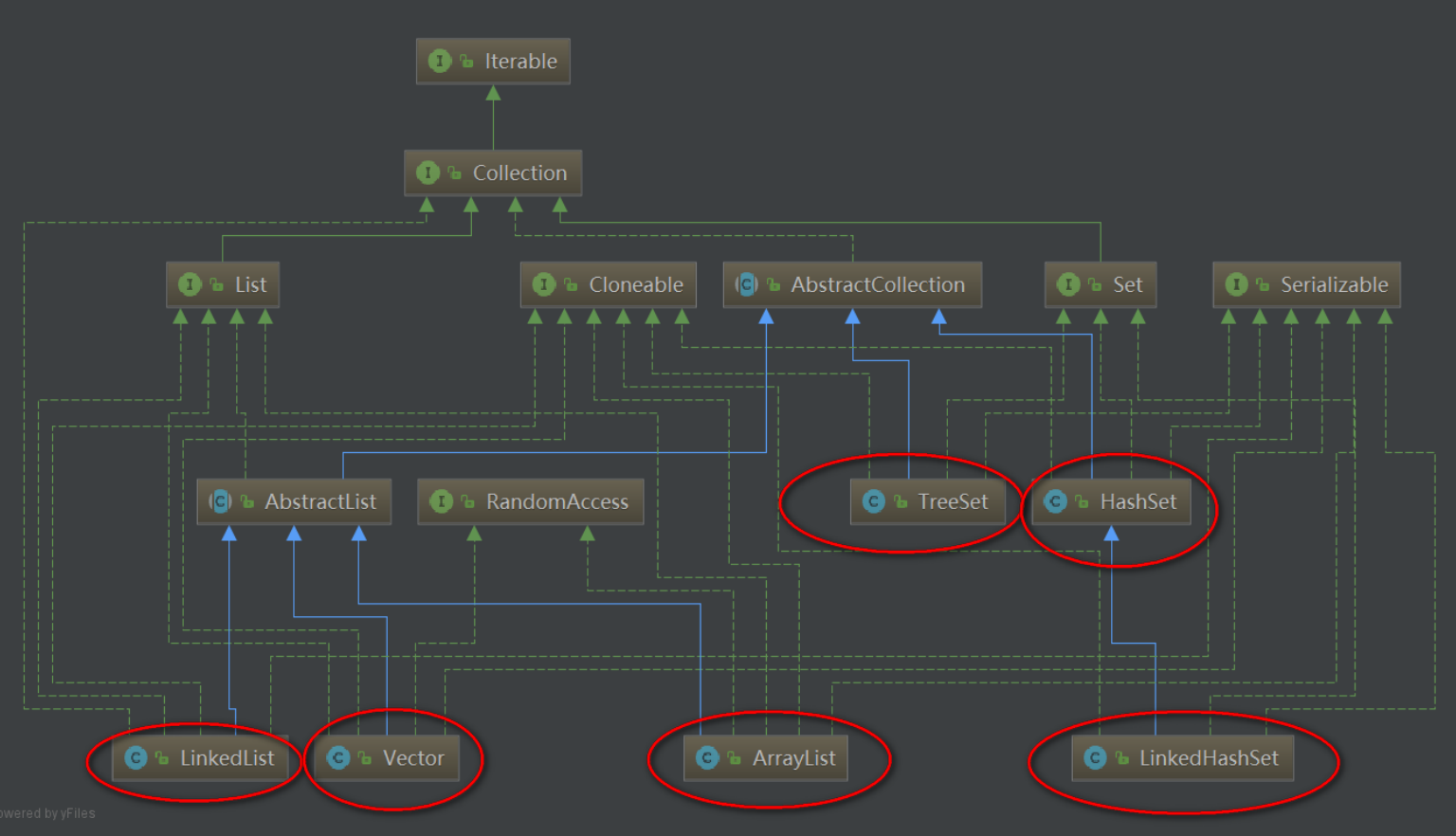 - 把集合共性的内容不断往上提取,最终形成集合的继承体系
