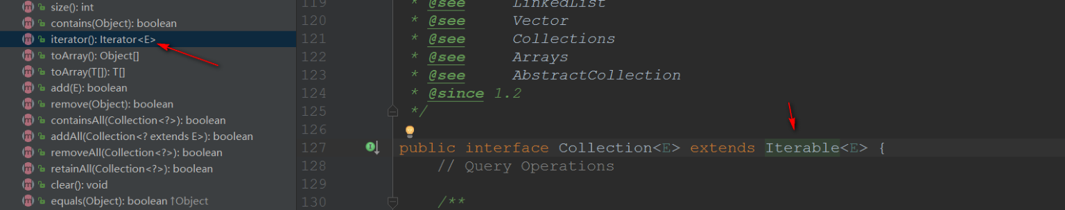 我们可以发现Collection的源码中继承了Iterable,有iterator()这个方法