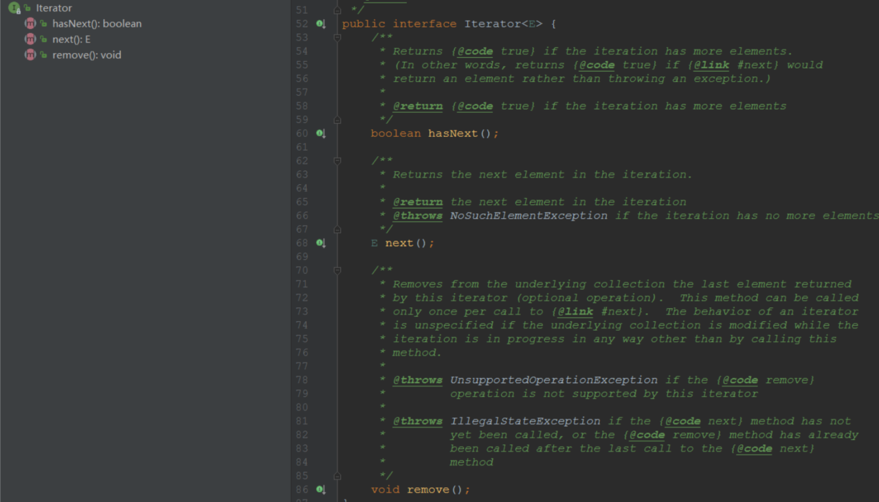 再来看一下,Iterator也是一个接口,它只有三个方法: