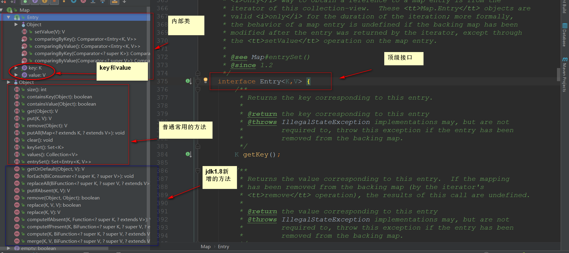 我们已经知道,Map中存放的是两种对象,一种称为key(键),一种称为value(值),它们在Map中是一一对应关系,这一对对象又称做Map中的一个Entry(项)Entry将键值对的对应关系封装成了对象。即键值对对象,这样我们在遍历Map集合时,就可以从每一个键值对(Entry)对象中获取对应的键与对应的值。