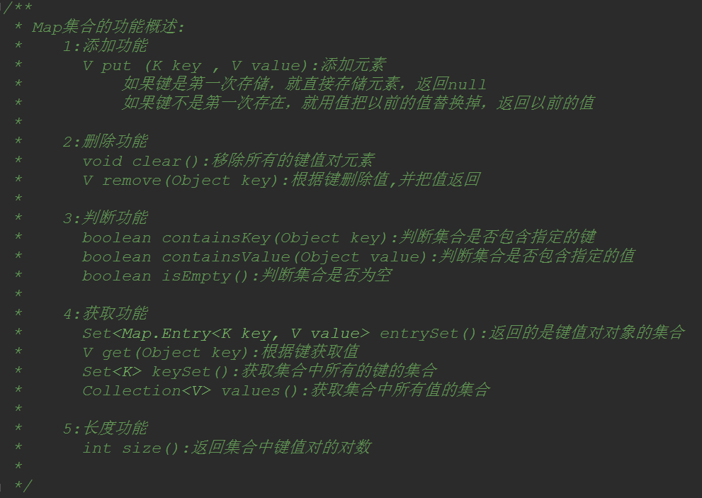 • 需要注意的是,Map中的集合不能包含重复的键,值可以重复;每个键只能对应一个值。