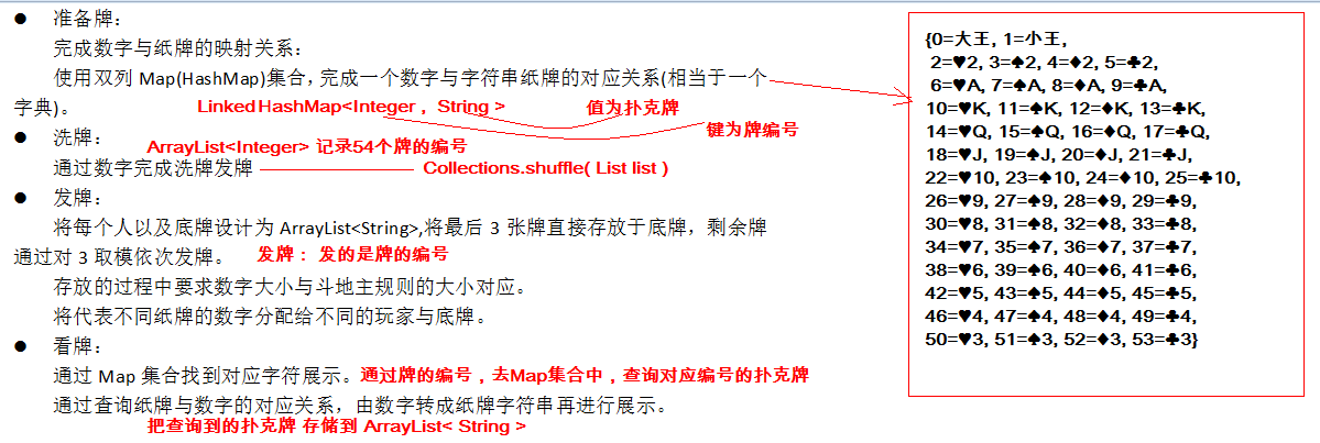 存放的过程中要求数字大小与斗地主规则的大小对应。