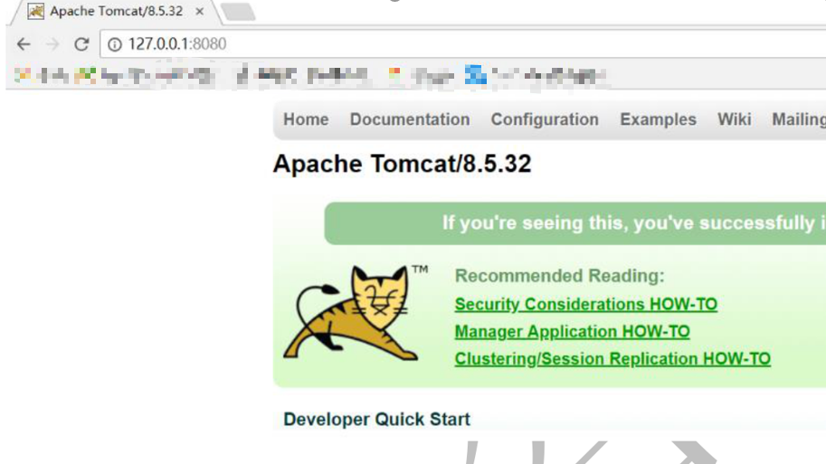 1. 启动一个 tomcat,浏览器地址栏输入 127.0.0.1:8080,出现如下界面