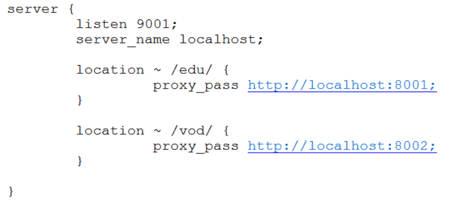 实现效果:使用 nginx 反向代理,根据访问的路径跳转到不同端口的服务中 nginx 监听端口为 9001,
